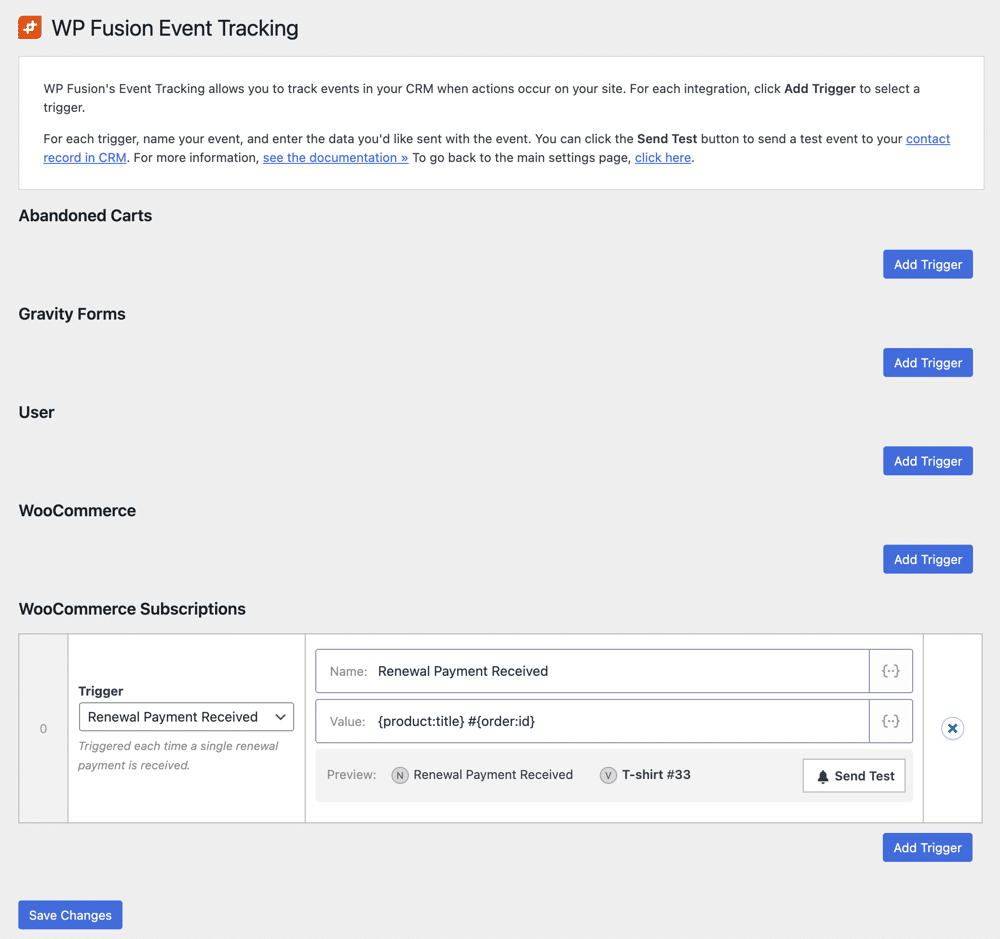 First, we must configure the integration module (via WP Fusion) to listen for the ‘renewal’ event and assign it a unique name that your CRM can understand.