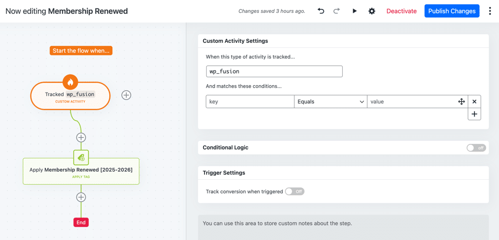 This guide explains how to automatically apply a tag to a contact in the CRM module immediately after a user successfully renews a subscription. This process uses two key modules: the integration module (via WP Fusion to detect the event) and the CRM module (to perform the automation).