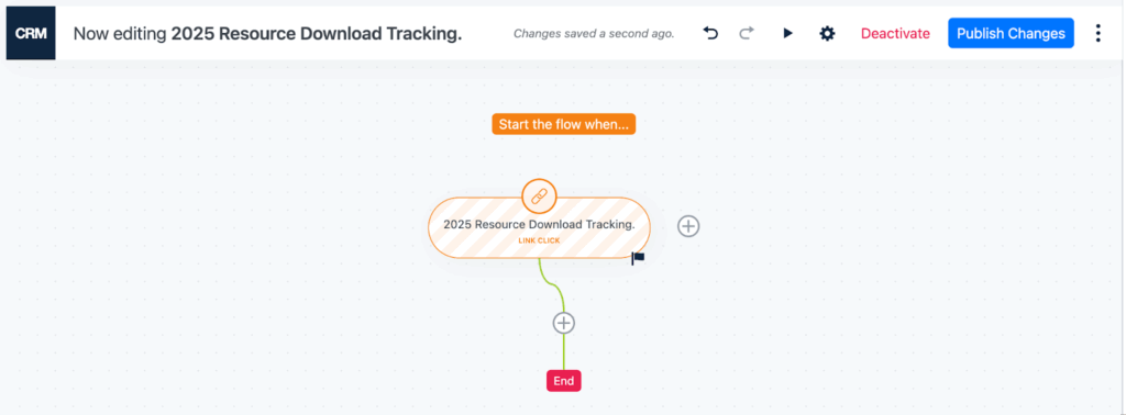 You can add steps like sending a follow-up “Thanks for downloading” email or tagging the contact for future campaigns. If you’re only tracking downloads, you can skip this and publish the Flow now.