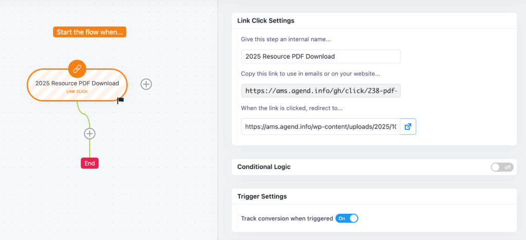 - Add a Link Click as the benchmark for your Flow.